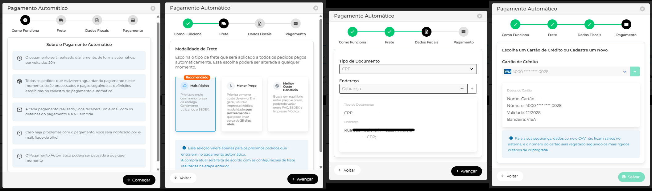 - Confirme e Habilite: Termine confirmando o pagamento e ativando o pagamento automático para os próximos pedidos